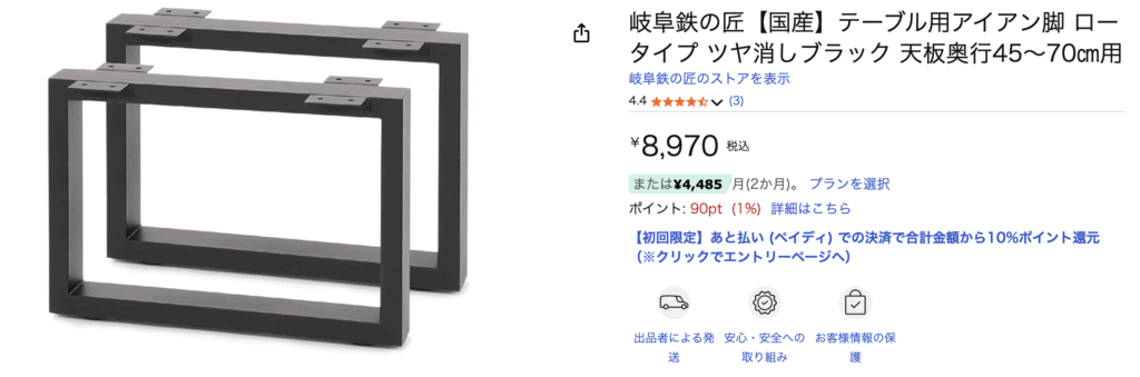 楽天やAmazonで「ローテーブル」「DIY」「脚」って検索してるといくつか出てくるんですが、注意点があります!